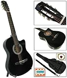 Its ok to practice on and to use to learn but i still cant wait to get an actual full sized guitar.Get more detail about New Black Cutaway Acoustic Guitar W/ Accessories Combo Kit Beginners.