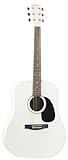 This guitar was a nice little addition to my fleet. After small adjustments it plays nearly as well as my other acoustics at a fraction of the price. It's the perfect guitar for keeping in the living room, near you always, and if the dog knocks it on the floor, you won't get mad. You won't be dissappointed in this pretty little gem.Get more detail about Johnson Spruce Top Acoustic Guitar, White.