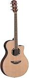 I have 3 guitars & this one is by far my favorite. I'm only 5'1 and small framed & this guitar is a perfect fit for me. The body is thinner than an acoustic & thicker than an electric. The on board tuner is great. This guitar sounds nice plugged in or on it's own. I love it!Get more detail about Yamaha APX500 - Natural Acoustic Electric Cutaway Guitar.